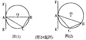 (2)如图(2),AB为⊙O非直径弦,∠CAE=∠B。求证:EF是⊙O的切线。
