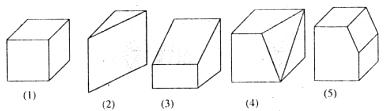 如图中,图(1)是正方体木块,把它切去一刀,得到如图⑵⑶⑷⑸的木块.