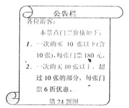 24.(本题满分8分)一旅游团来到某旅游景点,看到售票处旁边的公告栏如图所示,请根据公告栏内容回答下列问题:
