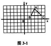 24.如图3-1,A点坐标为(3,3),将△ABC先向下平移4个单位得△A1B1C1,再△A1B1C1将绕点O逆时针旋转180º得△A2B2C2,请你画出△A1B1C1和△A2B2C2,并写出点A2的坐标。(6分)