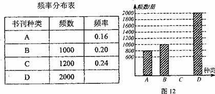 在学校开展的“献爱心”活动中,小东同学打算在暑假期间帮助一家社会福利书店推销A、B、C、D四种书刊.为了了解四种书刊的销售情况,小东对五月份这四种书刊的销售量进行了统计,小东通过采集数据,绘制了两幅不完整的统计图表(如图12),请你根据所给出的信息解答以下问题: