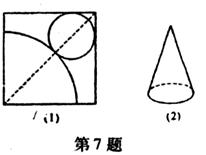 7.如下图(1),在正方形铁板上剪下一个圆形和扇形,使之恰好围成图(2)所示的一个圆锥模型,设圆的半径为