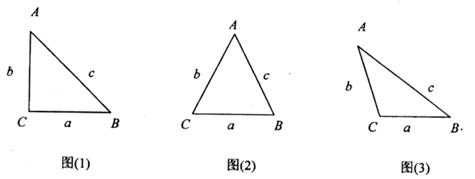 若∠C≠90°,如图(2)和图(3),请你类比勾股定理,试猜想