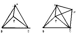 15.如图,设P是等边三角形ABC内的一点,PA=3,PB=4,PC=5,则∠APB=_________。
