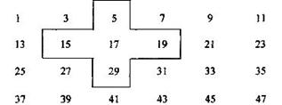 (1)十字框内5个数的和与框中间的数l7有什么关系?