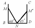 21.长为6m的木梯MN靠在墙AB上,它与地面的夹角为60°,将木梯绕一端N翻转,使它靠在墙CD上,此时它与地面的夹角为45°,求两墙AB、CD之间的距离(结果保留根号).