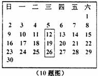 10.如图是某月的日历,图中用长方形框出一竖列的三个数的和是 ;若像图中那样用长方形框出一竖列的三个数中间的数是a,则这三个数的和是 。(用含a的式子表示)