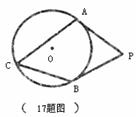 17.如图PA、PB分别切⊙O于点A、B,若∠C=50°,则∠P等于 ( )