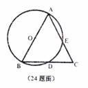 24.如图,点A、B、D、E在⊙O上,弦AE、BD的延长线相交于点C,若AB是⊙O的直径,D是BC的中点。