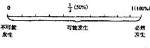 4.下列事件:(1)掷出一枚均匀的硬币,“国徽”面朝上(2)3人分成两组,一定有两人在一组(3)中国“飞人”刘翔1小时可以跑60千米(4)掷出一枚均匀的小正方体(每个面上分别标有l,2,3,4,5,6),朝上的数字小于6.上述事件发生的可能性标在图中