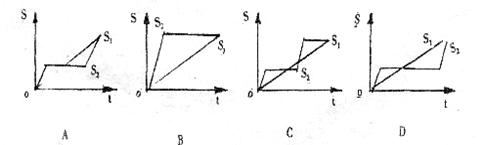 3.寓言故事“龟兔赛跑”讲述的是:乌龟和兔子赛跑时,速度很快的兔子看着缓慢爬行的乌龟,骄傲起来,于是便躺在路边睡了一觉,醒来时发现乌龟快到终点了,于是急忙直追,但为时已晚,乌龟得胜,如果用S1、S2分别表示乌龟和兔子爬行的路程,t表示时间,则下列图象中与故事情节吻合的是: ( )