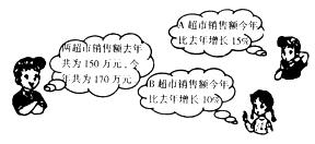 31.七年级(2)班的一个综合实践活动小组去A、B两个超市调查去年和今年“元旦”期间的销售情况,下图是调查后小敏与其他两位同学交流的情况,根据他们的对话,请你分别求出A、B两个超市今年“元旦”期间的销售额。