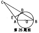 26.已知,如图,AB是的直径,BC交⊙O于D,DE⊥AC于点E,添加一个条件________使DE是⊙O的切线,(要求:条件不能与添加的辅助线有关)并进行证明。