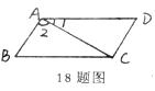 18.如图,AB=CD,AD=BC,∠l=40°,∠2=80°,则∠B= ( )