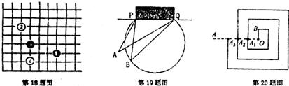 20.右上图是一回形图,其圆形通道的宽和OB的长均为1,回形线与射线OA交于Al,A2,A3,…。若从O点到A1点的圆形线为第1圈(长为7)。从点A1到点A2的回形线为第2圈,…依此类推。则第10圈的长为 。