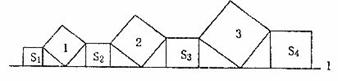上依次摆放着七个正方形(如图所示)。已知斜放置的三个正方形的面积分别是1、2、3,正放置的四个正方形的面积依次是S1、S2、S3、S4,则S1+S2+S3+S4= 。