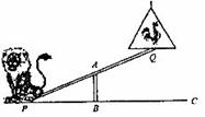马戏团让狮子和公鸡表演跷跷板节目。跷跷板支柱 AB的高度为1.2米。