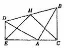 两个全等的含30º,60º的三角板ADE和三角板ABC如图所示放置。E、A、C三点在一条直线上,连结BD,取BD的中点M,连结ME、MC。试判断△EMC的形状,并说明理由。