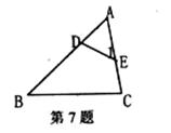 7、如图,D、E分别是△ABC的边AB、AC上的点,∠l=∠B,AE=EC=4,BC=10,AB=12,则△ADE和△ACB的周长之比为( )