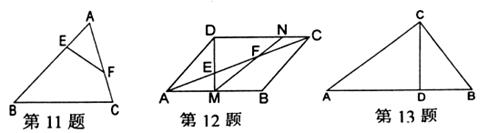 11、如图,要使△AEF和△ACB相似,已具备条件_____________,还需补充的条件是_________,或_________,或_________。