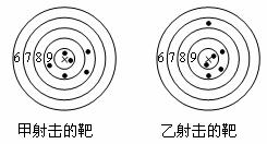 如图是甲、乙两人在一次射击比赛中击中靶的情况(击中靶中心的圆面为10环,靶中各数字表示该数所在圆环被击中所得的环数)每人射击了6次.