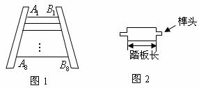 王大伯要做一张如图1的梯子,梯子共有8级互相平行的踏板,每相邻两级踏板之间的距离都相等.已知梯子最上面一级踏板的长度