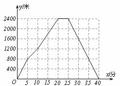 22.周华早起锻炼,往返于家与体育场之间,离家的距离y(米)与时间x(分)的关系如图所示.回答下列问题: