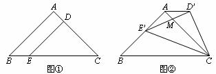 .将△CDE绕点C顺时针旋转,得到△CD’E’(如图②,点D’、E’分别与点D、E对应),点E’在AB上,D’E’与AC相交于点M.