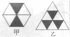 6.如图,水平放置的甲、乙两区域分别由若干大小完全相同的黑色、白色正三角形组成,小明随意向甲、乙两个区域各抛一个小球,P(甲)表示小球停在甲中黑色三角形上的概率,P(乙)表示小球停在乙中黑色三角形上的概率,下列说法中正确的是( )