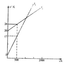 24.(12分)如图所示,L1、L2分别表示一种白炽灯和一种节能灯的费用y(费用=灯的售价+电费,单位:元)与照明时间