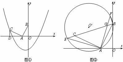 (3)如图②,E为BC延长线上一动点,过A、B、E三点作⊙O’,连结AE,在⊙O’上另有一点F,且AF=AE,AF交BC于点G,连结BF。下列结论:①BE+BF的值不变;②