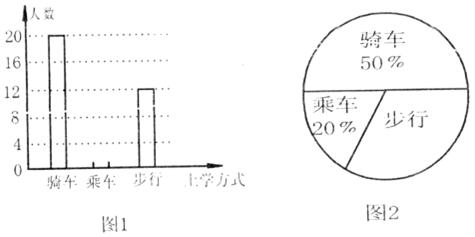 (3)在图1中,将表示“乘车”的部分补充完整.(6分)