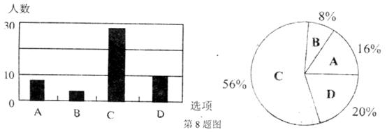 8.七年级一班在一次考试中对某道单选题的答题情况如下图所示: