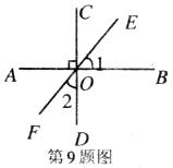 9.已知:如图,AB⊥CD,垂足为O,EF为过点O的一条直线,则∠1与∠2的关系一定成立的是( )