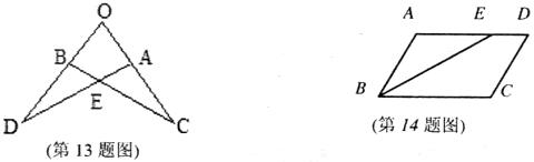 17.如图,AC、BD相交于点O,∠A=∠D,请你再补充一个条件,使得△AOB≌△DOC,你补充的条件是____________.