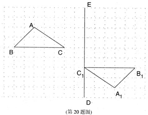 20.(本题满分9分).在如图的方格纸中,每个小正方形的边长都为1,△ABC与△A1B1C1构成的图形是中心对称图形.