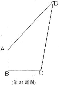 24.(本题满分8分)园丁住宅小区有一块草坪如图所示.已知,AB=3米,BC=4米,CD=13米,DA=12米,且AB⊥BC,求这块草坪的面积.