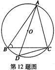 12.如图所示,⊙O是△ABC的外接圆,AD是⊙O的直径,连结CD,若⊙O的半径r=
