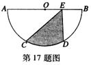 17.如图所示,AB为半圆O的直径,C、D是AB上的三等分点,若⊙O的半径为1,E为线段AB上任意一点,则图中阴影部分的面积为 。