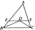 18,如图,△ABC中,∠B、∠C的平分线交于点D,过D作EF∥BC分别交AB、AC于E、F。若BE+CF=5cm,则EF= 。