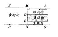 28.如图,一段街道的两边缘所在直线分别为AB、PQ,并且AB//PQ.建筑物的一端DE所在的直线MN⊥AB于点M,交PQ于点N.小亮从胜利街的A处,沿着AB方向前进,小明一直站在点P的位置等候小亮.