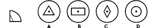 13.将一圆形纸片对折后再对折,得到下图(左起第一个),然后沿着图中的虚线剪开,得到两部分,其中一部分展开后的平面图形是 ( )