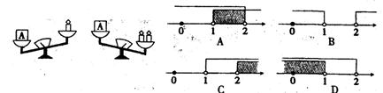 14.如下图,天平右盘中的每个砝码的质量都是1g,则物体A的质量m(g)的取值范围在数轴上可表示为( )