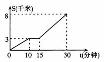 32.小亮家距离学校8千米,昨天早晨,小亮骑车上学途中,自行车“爆胎”,恰好路边有“自行车”维修部,几分钟后车修好了,为了不迟到,他加快了骑车到校的速度。回校后,小亮根据这段经历画出如下图像。该图像描绘了小亮行的路程S与他所用的时间t之间的关系。请根据图像,解答下列问题: