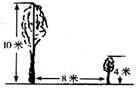 10.如图,有两棵树,一棵高10米,另一棵高4米,两树相距8米。一只小鸟从一棵树的树梢飞到另一棵树的树梢,问小鸟至少飞行( )