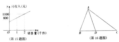 15.某公司销售人员的个人月收入与其每月的销售量成一次函数关系,图像如图所示,则此销售人员的销售量为3千件时的月收入是 元。