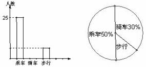 6.某校八(1)班同学上学时乘车,骑车和步行的人数分布直方图和扇形分布图如图所示(两图都不完整),则下列说法错误的是( )