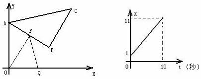 (3)求点P在边AB上运动时,△OPQ的面积S(平方单位)关于时间t(秒)的函数关系式,并求当点P运动到边AB上哪个位置时,△OPQ的面积最大?
