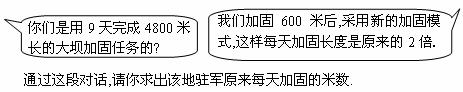27.进入防汛期后,某地对河堤进行了加固.该地驻军在河堤加固的工程中出色完成了任务.这是记者与驻军工程指挥官的一段对话: