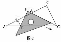 ⑵ 当三角尺沿AC方向平移到图-2所示的位置时,一条直角边仍与AC边在同一直线上,另一条直角边交BC边于点D,过点D作DE⊥BA于点E.此时请你通过观察、测量DE、DF与CG的长度,猜想并写出DE+DF与CG之间满足的数量关系,然后证明你的猜想;